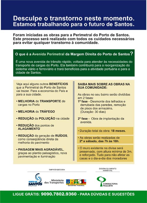 Na ilustração do post (clique na imagem para ampliá-la e ler melhor), o folheto que está sendo distribuído para explicar os detalhes e as consequências da obra da Avenida Perimetral.