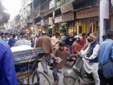 Alguém tem idéia de como é a convivência amigável entre pedestres, bicicletas, motocicletas, carros, caminhões e ônibus numa rua na India?
