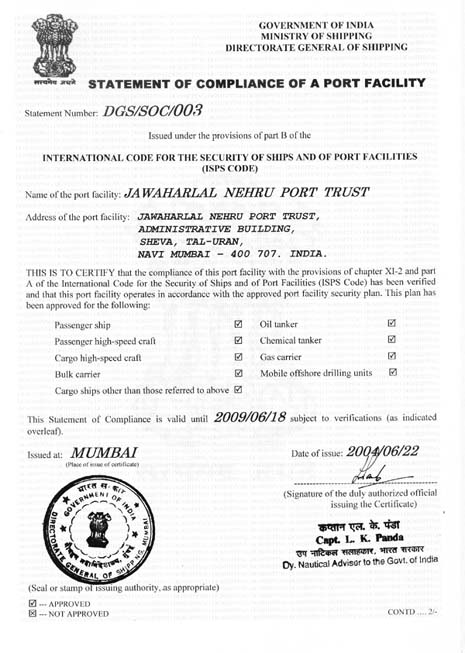 Cabe à Conportos acompanhar a implantação do código internacional anti-terrorismo nos portos do País e conceder ou não a eles a Declaração de Cumprimento (DC) do ISPS Code.
