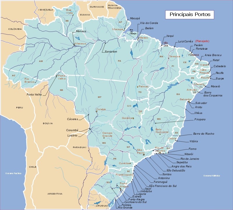 Mapa com os portos brasileiros, responsáveis por essa marcas. Clique na imagem para ampliá-la.
