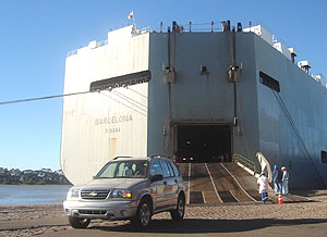 A GM acaba de realizar o seu maior desembarque no porto do Rio Grande (RS). O Porto Novo, cais público do terminal gaúcho, recebeu de uma só vez nada menos que 2.335 veículos da montadora.Produzidos na Argentina, os 2.335 veículos (1.976 sedãs Classic e 359 caminhonetes Tracker) chegaram ao porto gaúcho na manhã da última segunda-feira a bordo do navio de bandeira panamenha “Barcelona” (foto). A operação, encerrada por volta das 24h do mesmo dia, mobilizou 156 pessoas.