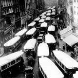 A foto que vemos acima nos mostra uma cena típica da vida nas grandes metrópoles: um congestionamento de tráfego. Não haveria nada de especial nesse fato se não fosse a data da imagem: 1930. Nesse ano, a frota de Paris já contabilizava 327.800 veículos, ou seja, um automóvel para cada 14 habitantes. Com isso, a velocidade média dos ônibus, nos períodos de rush, caía para modestos 5 km/h — a velocidade de um pedestre. Se não fosse o serviço de transporte de massa, principalmente o metrô, que transporta milhões de passageiros sob a superfície, a cidade de Paris já teria parado há muito tempo.
