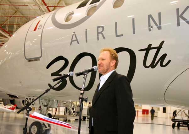Mauro Kern (foto), vice-presidente de aviação comercial da Embraer, discursa durante a entrega do 300º Embraer 175, à norte-americana Northwest Ailines, em São José dos Campos (SP).