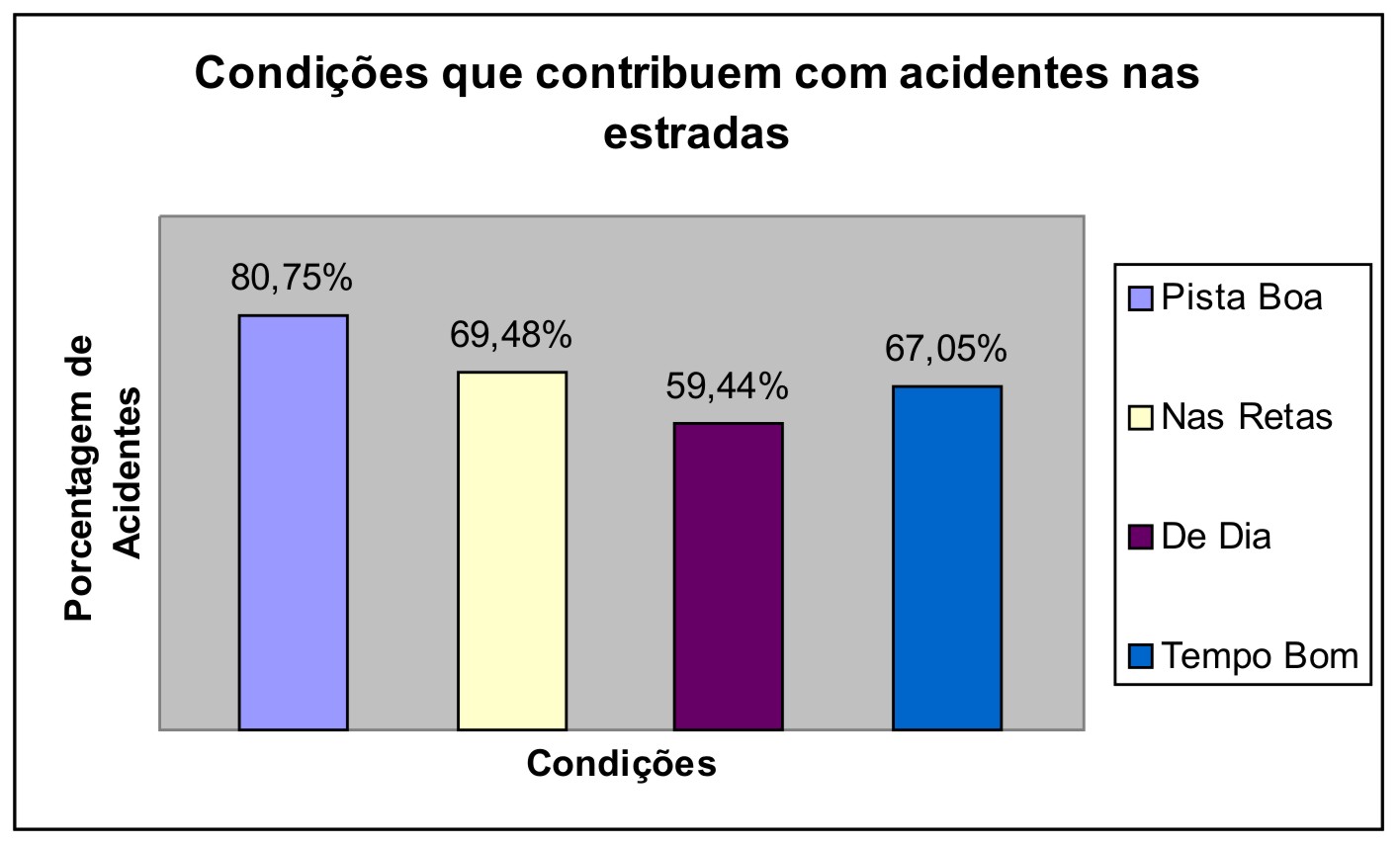 De acordo com a PRF, mais de 80% dos acidentes acontecem em pistas em bom estado de conservação e nas retas, quando o motorista acaba abusando da velocidade e não cumpre as regras de segurança no trânsito.