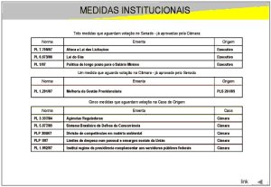 Cinco medidas aguardam votação na Casa de origem (Câmara), entre as quais as que tratam das agências reguladoras e do Sistema Brasileiro de Defesa da Concorrência.