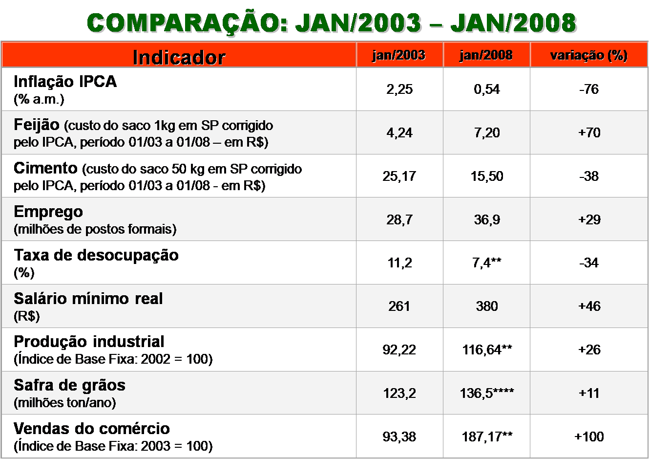 A partir de hoje, publicaremos um balanço do país, no período 2003/2008.