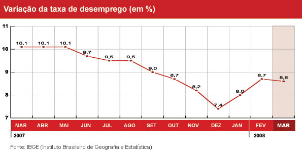 Em março de 2007, a taxa havia ficado em 10,1%.