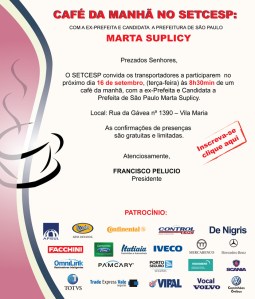 Recebi mensagem do Setcesp, que é o sindicato das empresas de transporte rodoviário de cargas da capital São Paulo e de mais de uma dezena de cidades no entorno.