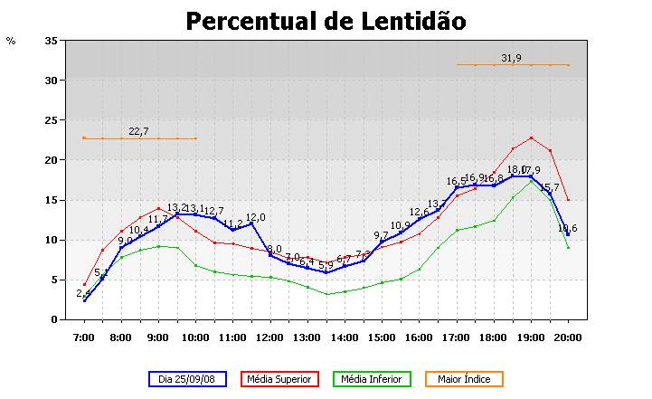Na segunda-feira (22/09), a curva de percentual de lentidão começou bem e terminou mal.