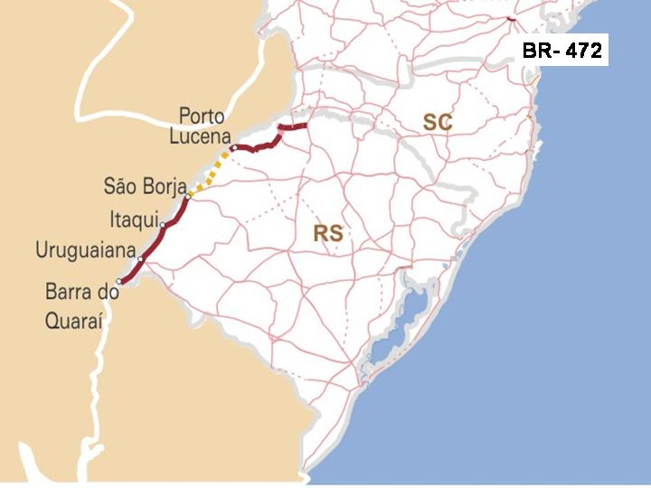 O primeiro fica entre as proximidades de São Borja (km 397) e Uruguaiana (km 575). O segundo está entre o entroncamento com a BR-290 (km 576) e a fronteira com o Uruguai (km 649).