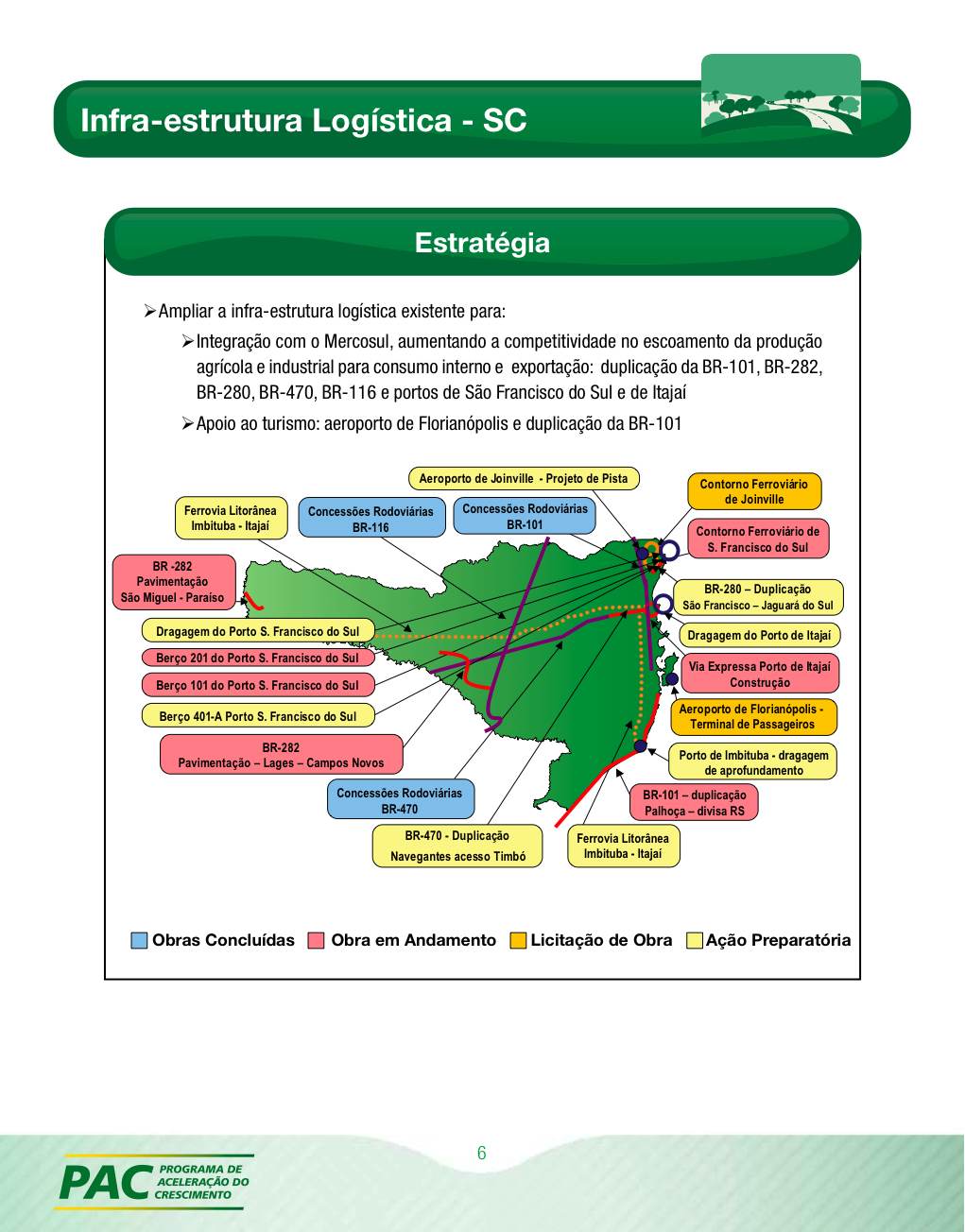 Em Logística, o PAC já investiu e investirá até 2010 R$ 2,7 bilhões em obras e projetos exclusivos do Estado e mais R$ 1,0 bilhão em empreendimentos de caráter regional.