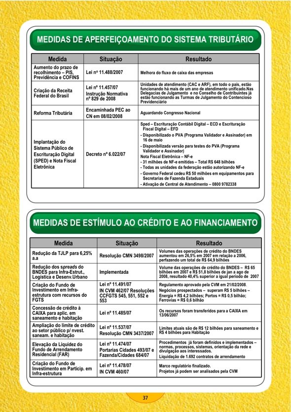 Como mencionado no post anterior, as medidas de aperfeiçoamento do sistema tributário constituintes do PAC, também não são divulgadas pela grande imprensa.
