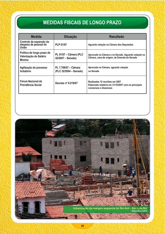 O que depende do Executivo está sendo encaminhado. O Fórum realizou 12 reuniões em 2007 e foi elaborado relatório para os devidos desdobramentos.