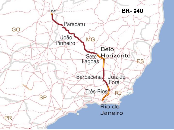 A BR-040/DF/GO/MG/RJ, que liga Brasília ao Rio de Janeiro, passando por Goiás e Minas Gerais, terá sua gestão concedida à iniciativa privada, nos mesmos moldes das bem sucedidas licitações dos sete lotes e na Bahia.