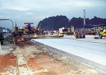 Os pavimentos de concreto-cimento são de coloração cinza-claro.