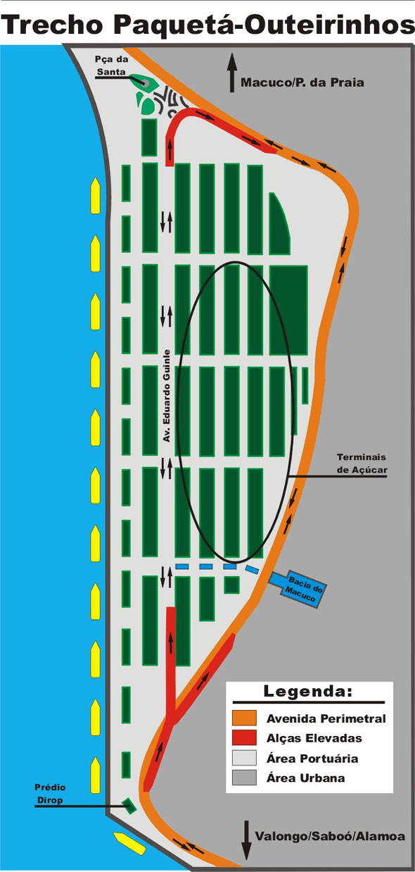 (Clique na imagem para ampliar o lay-out da Perimetral do Porto de Santos, mencionada na matéria)