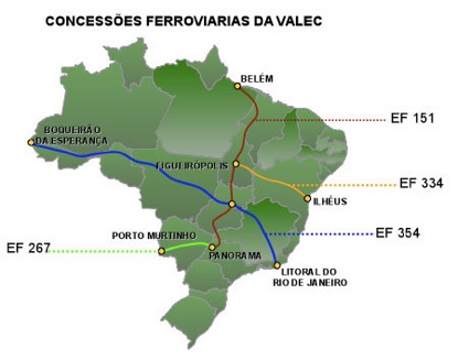Além disso, a VALEC, que vinha tendo como função principal a construção da EF 151 – A Ferrovia Norte-Sul, que vai de Belém (PA) até Panorama (SP), detem, agora também, pela Lei 11.772, a concessão das seguintes Ferrovias: